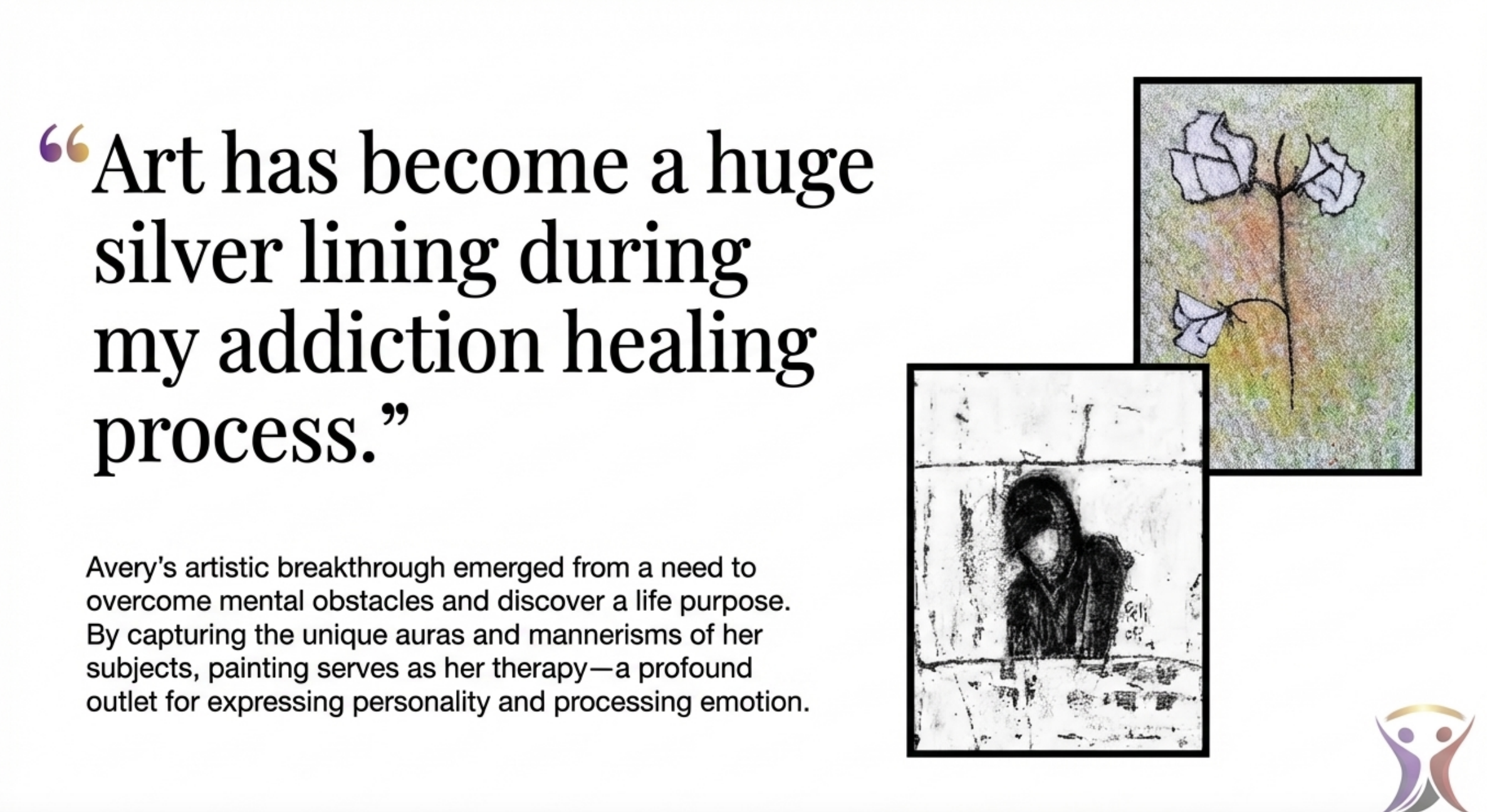 Avery's artistic breakthrough emerged from a need to overcome mental obstacles and discover a life purpose. By capturing the unique auras and mannerisms of her subjects, painting serves as her therapy — a profound outlet for expressing personality and processing emotion.